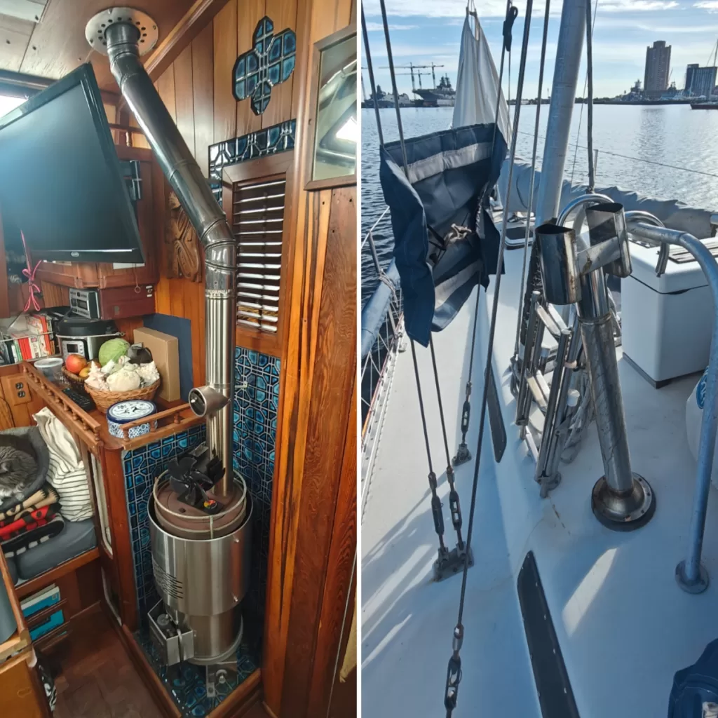 After returning to the Virginia side of the Potomac, temperatures had dropped low enough that ice began to form on the brackish waters of the creeks and rivers surrounding the bay. On several occasions, the ice tore at the bottom paint around our bow, leaving bare patches at the waterline. While Nic traveled to California to visit his parents in February, a particularly cold week of weather stranded Rua Hatu in approximately 1 inch while anchored. Unfortunately, the diesel heater began to sputter precisely as the temperatures dropped, and all of the fuel lines had to be hastily cleared by hand to keep from freezing onboard. Thankfully, we were anchored near a friend’s home and they helped immensely throughout the whole ordeal. In fact their entire neighborhood came to the rescue, offering help, tools, logistics and warmth! We were truly grateful for all of their hospitality during the cold winter.